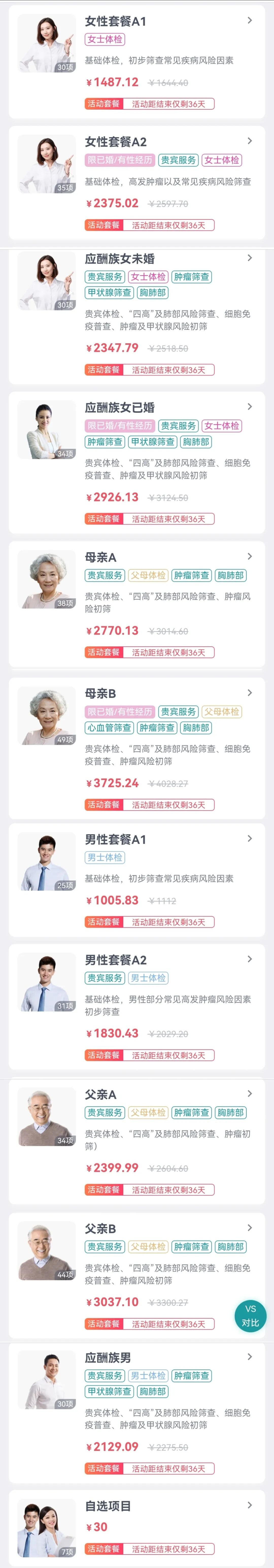 溫馨提示:除此以外,還可以根據(jù)個(gè)人身體狀態(tài)、家族史等到現(xiàn)場(chǎng)個(gè)性化定制體檢套餐,同樣予以優(yōu)惠。(具體價(jià)格以現(xiàn)場(chǎng)開(kāi)單計(jì)算為準(zhǔn))