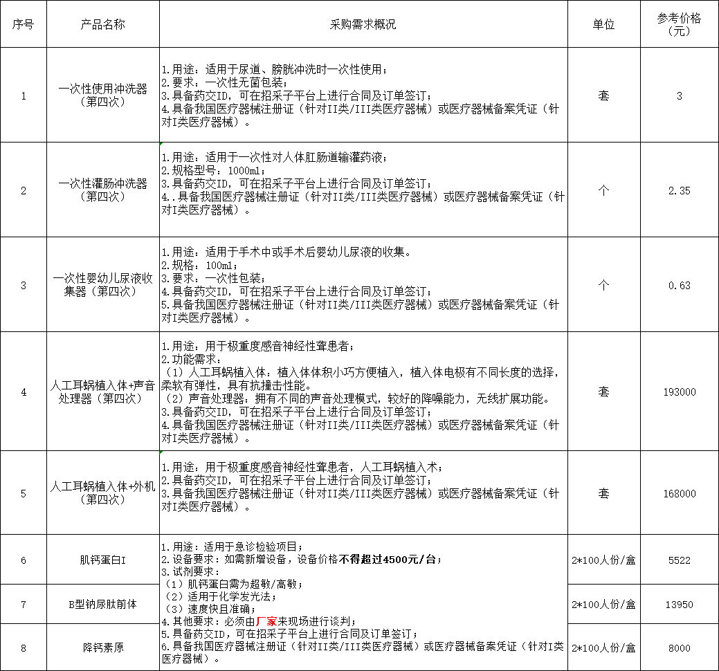 我院擬定一批醫(yī)用器械項(xiàng)目進(jìn)行耗材采購談判,歡迎符合資格條件的廠家及配送公司報(bào)名參加。