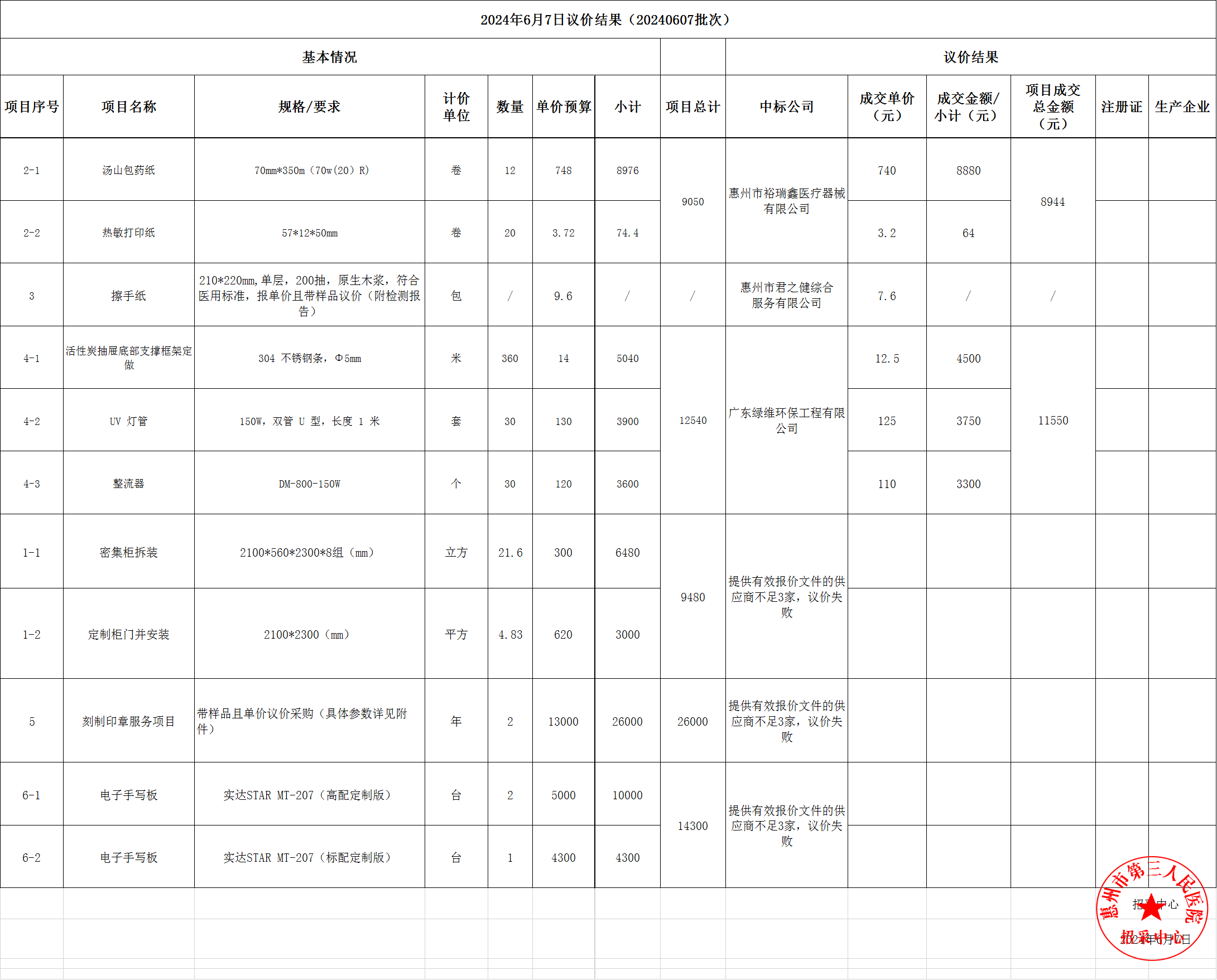 2024年6月7日議價結(jié)果公示