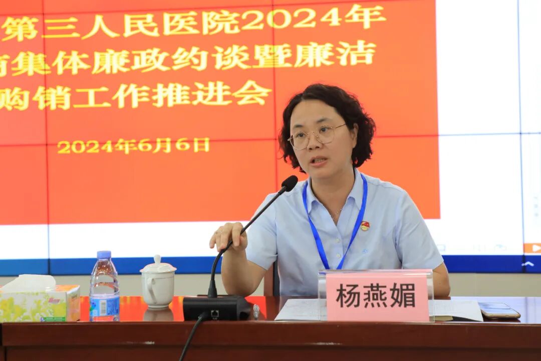 醫(yī)院黨委專(zhuān)職副書(shū)記楊燕媚同志對(duì)供應(yīng)商作集體廉政約談,并就廉潔購(gòu)銷(xiāo)工作提出要求。