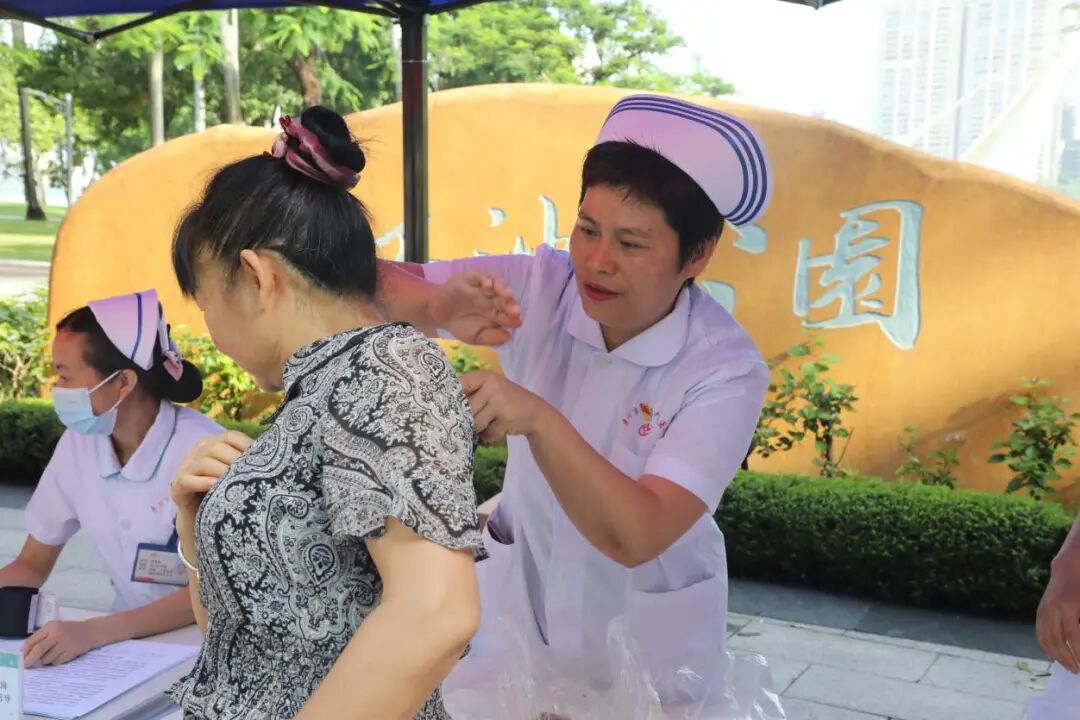 現(xiàn)場(chǎng)群眾積極參與,很多老街坊比較關(guān)注自己的血壓、血糖和視力情況,有的人對(duì)溫通刮痧和耳穴壓豆等中醫(yī)療法有需求,有的人對(duì)急救技能感興趣,在這里都可以一站式了解。大家紛紛為三院醫(yī)護(hù)們不畏酷暑、服務(wù)群眾的奉獻(xiàn)精神和飽滿(mǎn)熱情點(diǎn)贊。