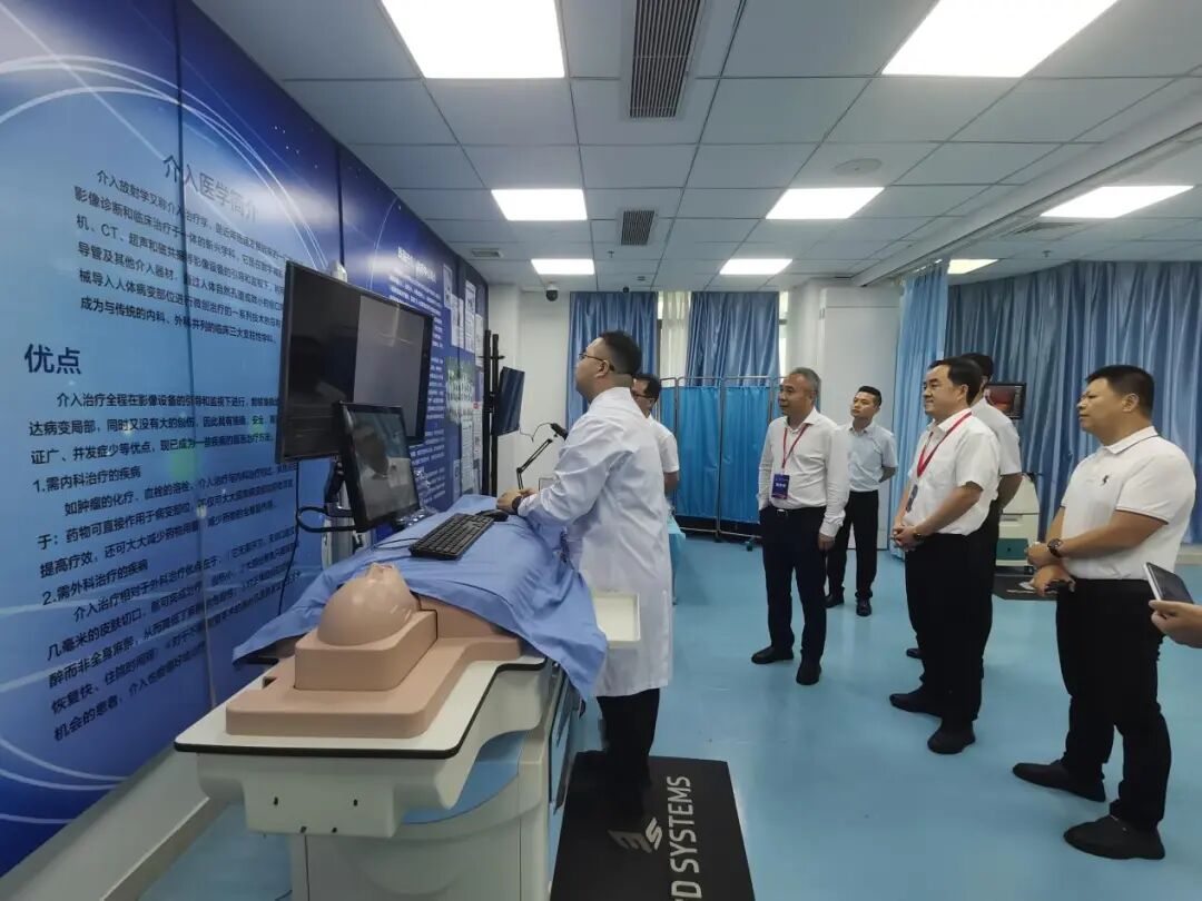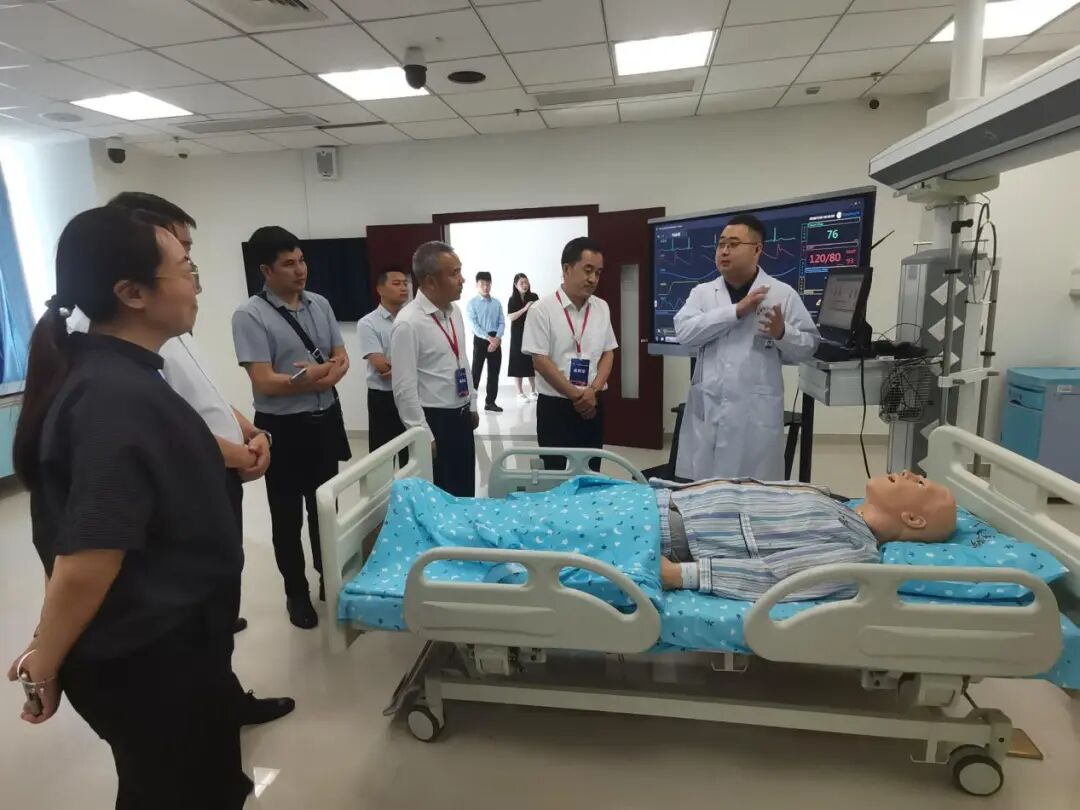 在臨床技能培訓(xùn)中心,李雪松院長操作達(dá)芬奇機(jī)器人模擬器,進(jìn)行模擬手術(shù)演示。在參訪過程中,李雪松院長與其他醫(yī)院同行、