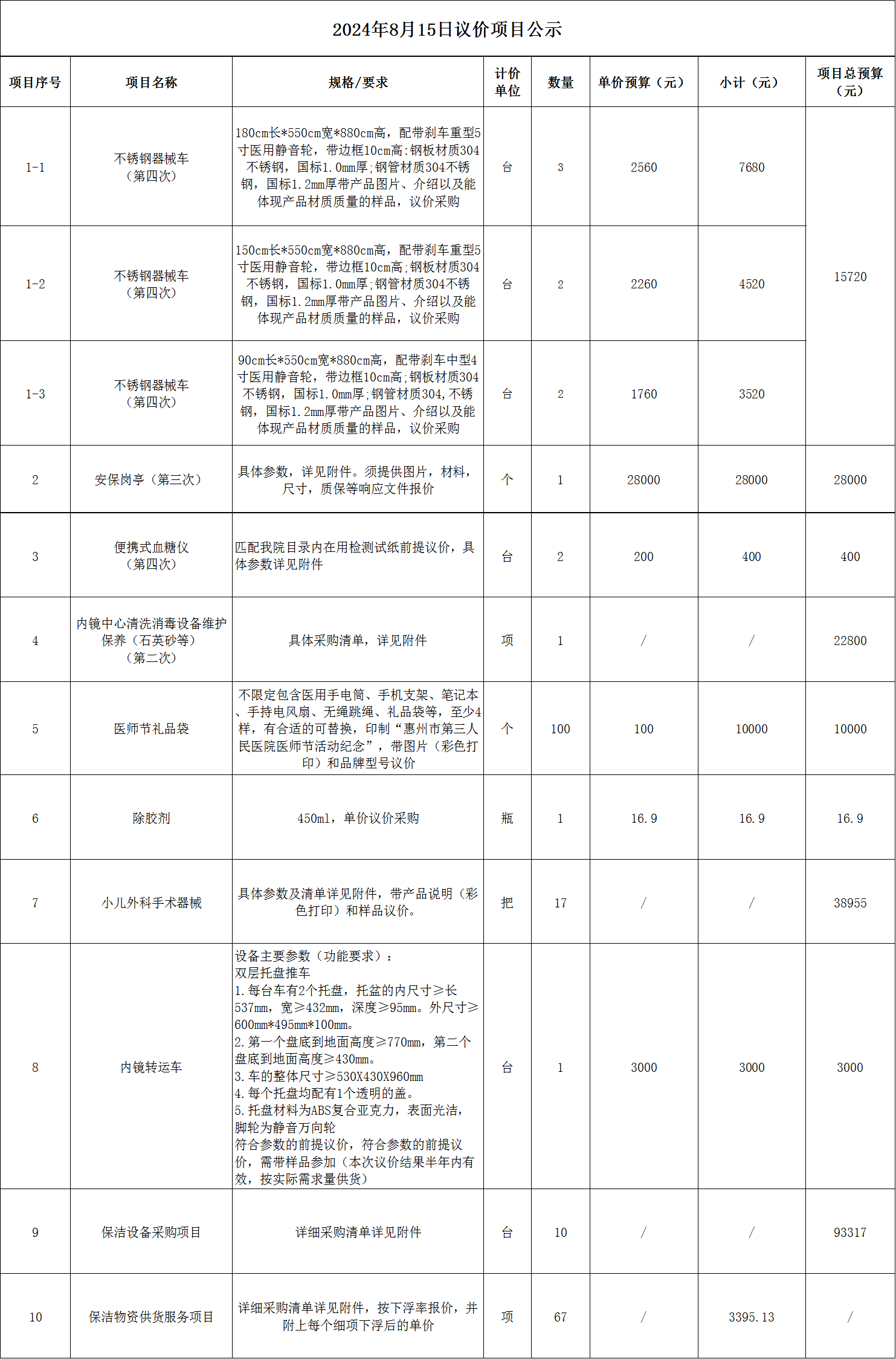 一、項目名稱:20240815議價項目