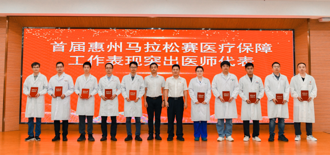 吳昌桓、鄒云良、鐘達(dá)、楊杏、方祀福、蔡清紅、劉焱森、賴(lài)玉林、陳坤、李江、鄧德鈞、李樂(lè)、黃平、胡良巧、張以財(cái)、陳文中、麥周明、陳嘉鴻、賴(lài)志鵬、鄭海豪、等醫(yī)師獲得“首屆惠州馬拉松賽醫(yī)療保障突出貢獻(xiàn)醫(yī)師”表彰。