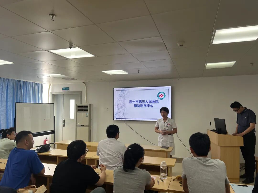 康復(fù)醫(yī)學(xué)中心副主任李旅萍為進修學(xué)員詳細(xì)介紹了惠州市第三人民醫(yī)院及康復(fù)醫(yī)學(xué)中心的主要情況及發(fā)展歷程,并指出,學(xué)員們在學(xué)習(xí)過程中遇到問題一定要及時反饋,康復(fù)醫(yī)學(xué)中心從帶教團隊到科室領(lǐng)導(dǎo)都會盡力幫助大家解決問題。并囑咐帶教團隊,一定要制定系統(tǒng)的進修學(xué)習(xí)計劃,在3個月的時間里,保障好進修的培訓(xùn)質(zhì)量,讓大家能真真正正的學(xué)到知識,掌握技能,回到原單位后,能把所學(xué)的知識服務(wù)于當(dāng)?shù)鼗颊摺?/p>