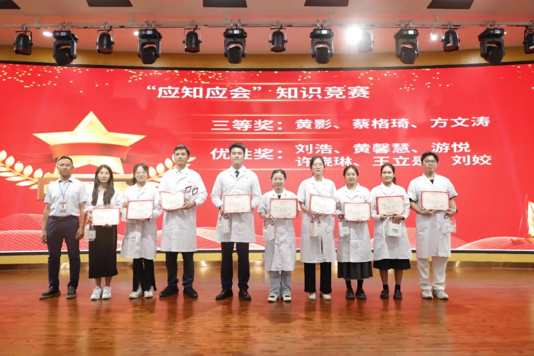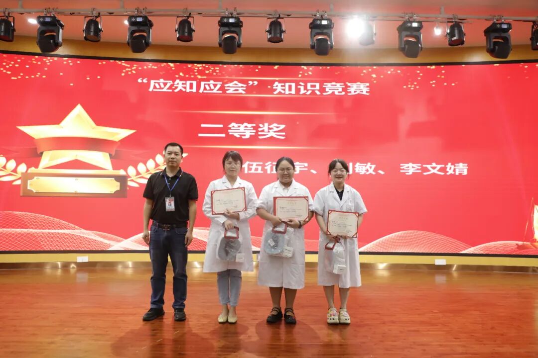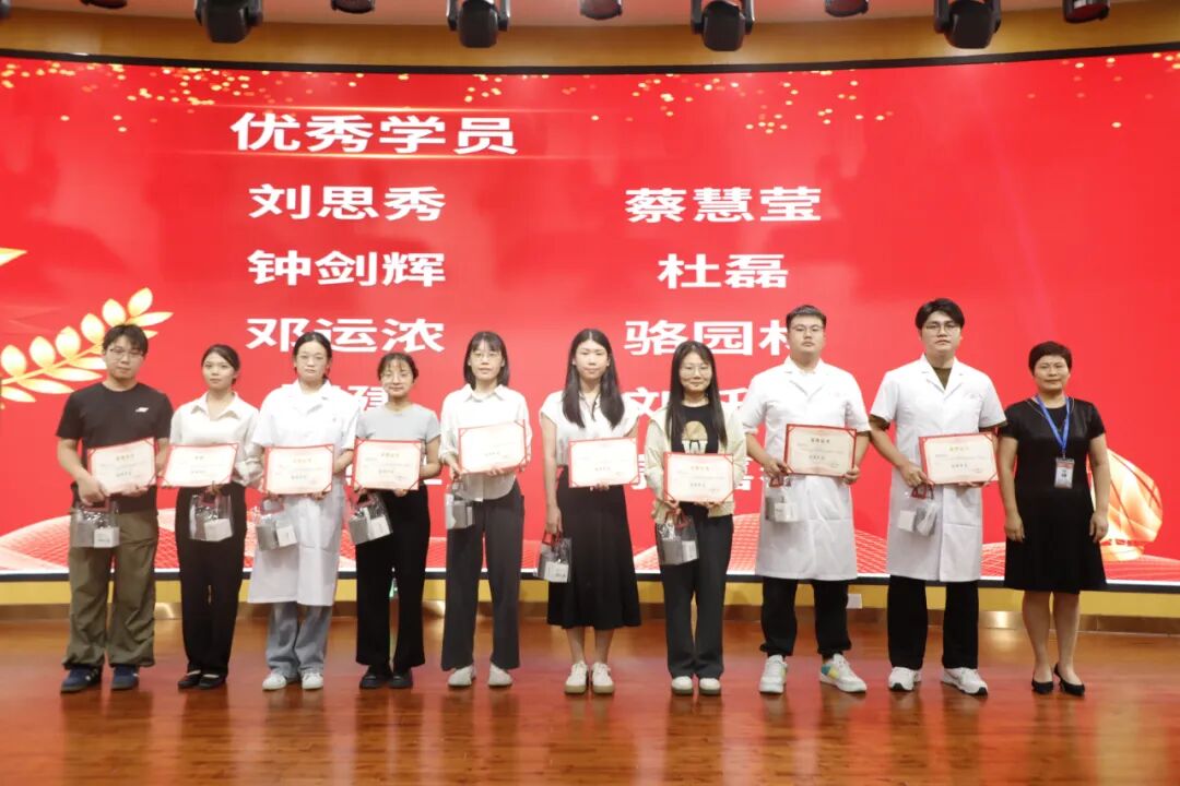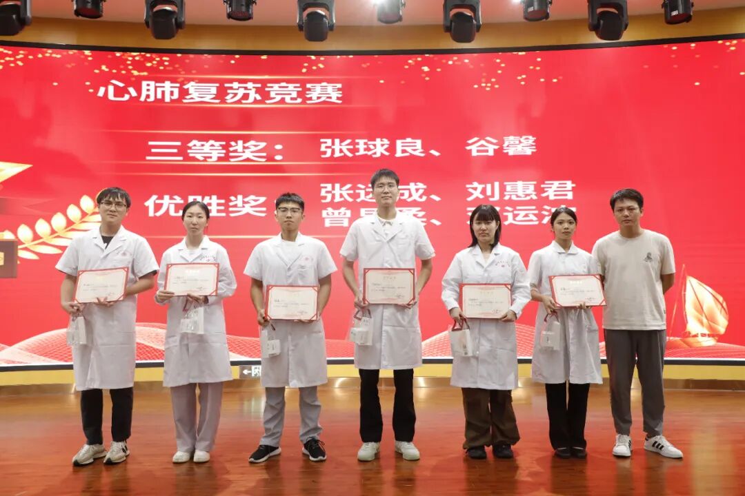 活動首先進行了頒獎儀式。醫(yī)院黨委書記肖純、專職副書記楊燕媚、黨委辦主任楊海康、藥學部主任葉立新、院感部主任張麗梅、護理部主任李林枝、數(shù)據(jù)中心主任郭海平作為頒獎嘉賓,為學員們頒發(fā)了“優(yōu)秀學員”、“優(yōu)秀班干部”、“優(yōu)秀班級”、“應(yīng)知應(yīng)會知識競賽”、“心肺復(fù)蘇比賽”等獎項,并送上溫馨小獎品。