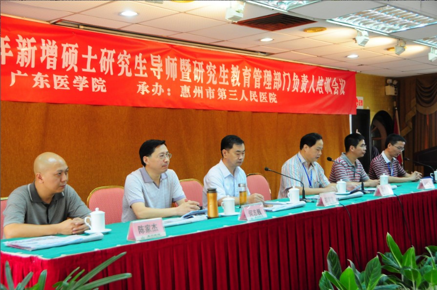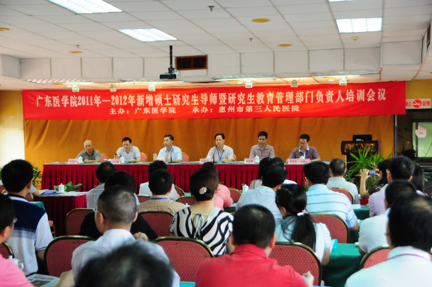 8月26日上午,“廣東醫(yī)學(xué)院2011-2012年新增碩士研究生導(dǎo)師暨研究生教育管理部門負(fù)責(zé)人培訓(xùn)會(huì)議”在惠州賓館碧云樓會(huì)議室隆重舉行,本次會(huì)議由我院與廣東醫(yī)學(xué)院聯(lián)合舉辦,共有60余名研究生導(dǎo)師及18名相關(guān)醫(yī)院科教科主任參加了培訓(xùn)學(xué)習(xí)。廣東醫(yī)學(xué)院鄭學(xué)寶院長(zhǎng)、研究生學(xué)院何志巍院長(zhǎng)、陳家杰書記、劉華鋒副院長(zhǎng),我院馬顯力院長(zhǎng)、科教部簡(jiǎn)希堯主任,新增導(dǎo)師許漢標(biāo)副院長(zhǎng)、內(nèi)一區(qū)吳峰主任、內(nèi)三區(qū)肖純主任、李桂平主任、內(nèi)四區(qū)黃志勇主任,乳腺科張樹(shù)平主任參加了開(kāi)班典禮,典禮由簡(jiǎn)希堯主任主持。