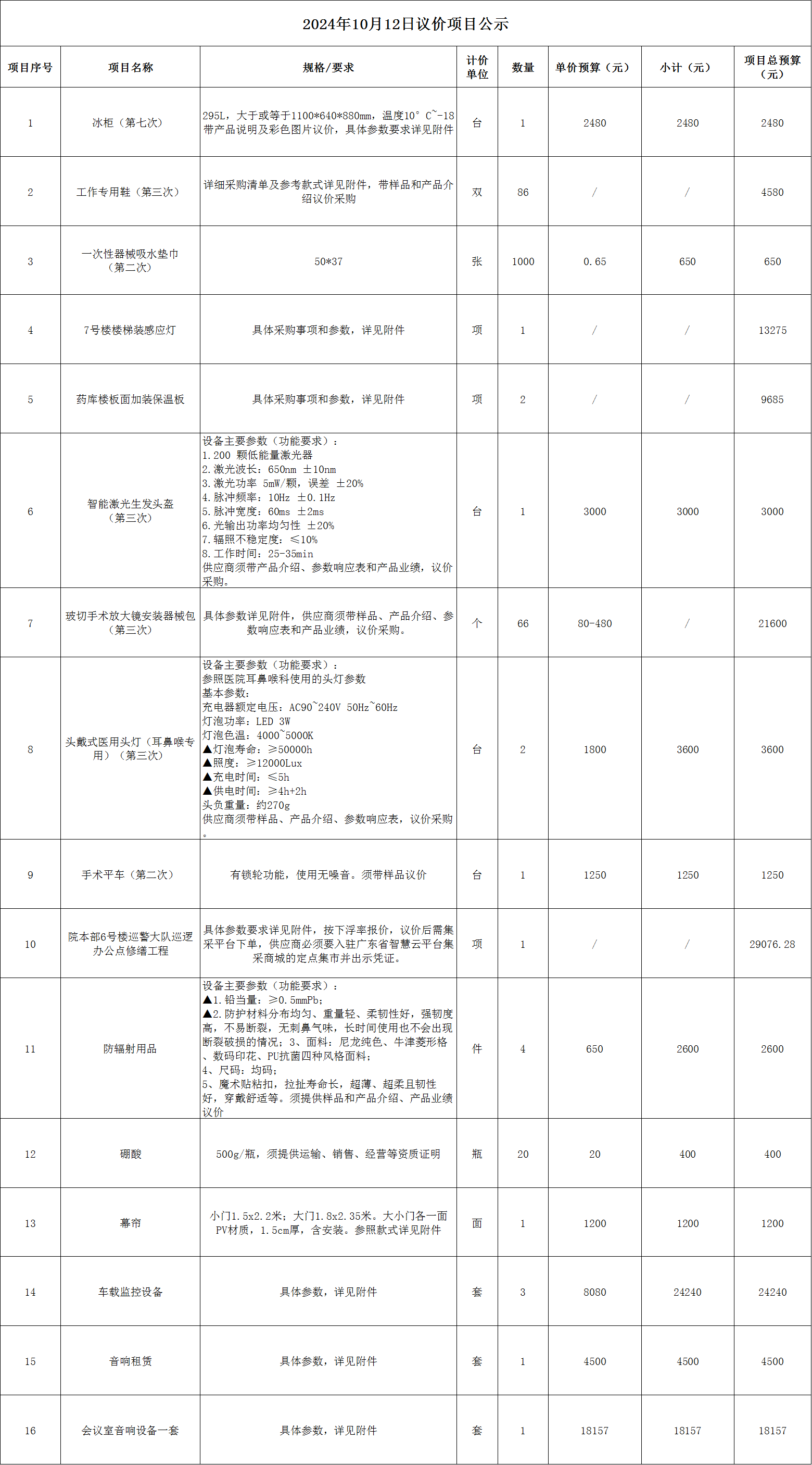 一、項目名稱:20241012議價項目