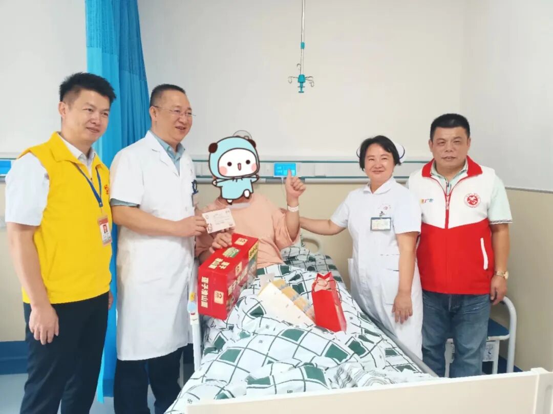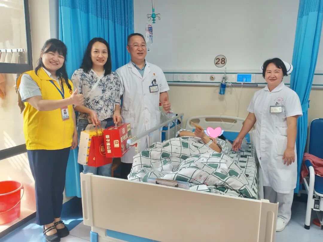 “你們能和我一起合個(gè)影嗎?我老婆今天外出辦事,我要把照片發(fā)給她看看,讓她也開心一下?!苯衲?2歲的胡大叔(化名)說,志愿者的到來給了他一個(gè)驚喜,讓他十分感動(dòng),沒想到在醫(yī)院里也能收到這樣特別的祝福。