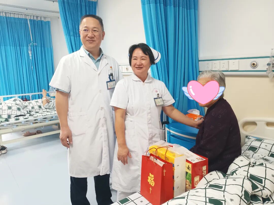 在醫(yī)護(hù)人員的帶領(lǐng)下,志愿者來到病房,對(duì)住院長(zhǎng)者噓寒問暖,并送上重陽(yáng)節(jié)的真摯祝福。健康食品長(zhǎng)壽面、紅彤彤的蘋果、寫滿祝福的卡片……每到一處,都是溫馨的、其樂融融的場(chǎng)景。