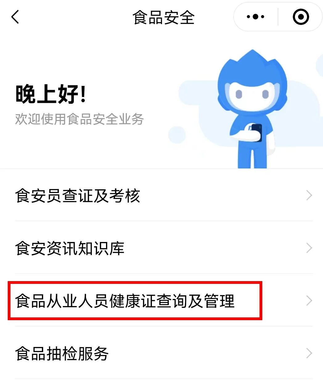 4.點(diǎn)擊進(jìn)入食品從業(yè)人員健康證查詢及管理
