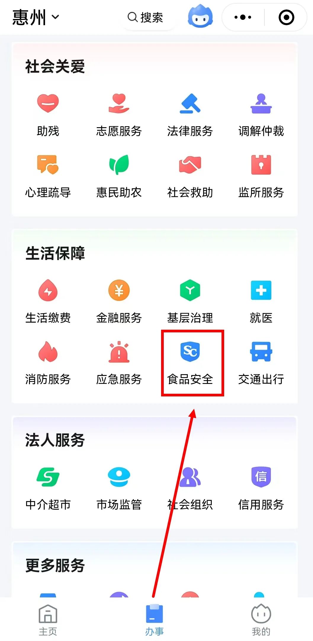 2.進(jìn)入粵省事首頁(yè),點(diǎn)擊按鈕下方辦事按鈕