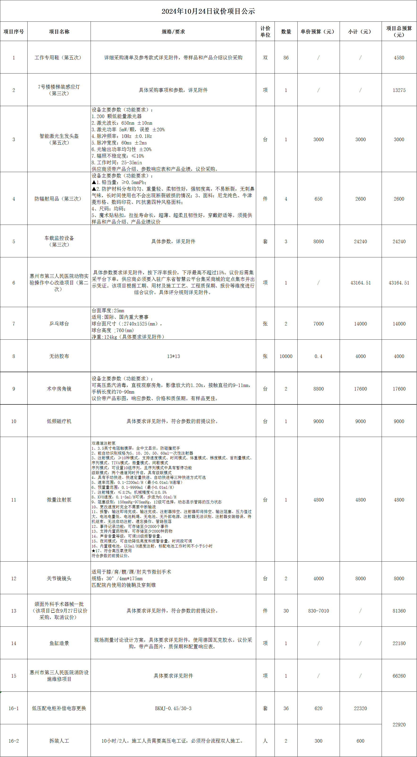 惠州市第三人民醫(yī)院擬定一批采購(gòu)項(xiàng)目進(jìn)行議價(jià)采購(gòu),歡迎符合資格條件的投標(biāo)人投標(biāo)。
