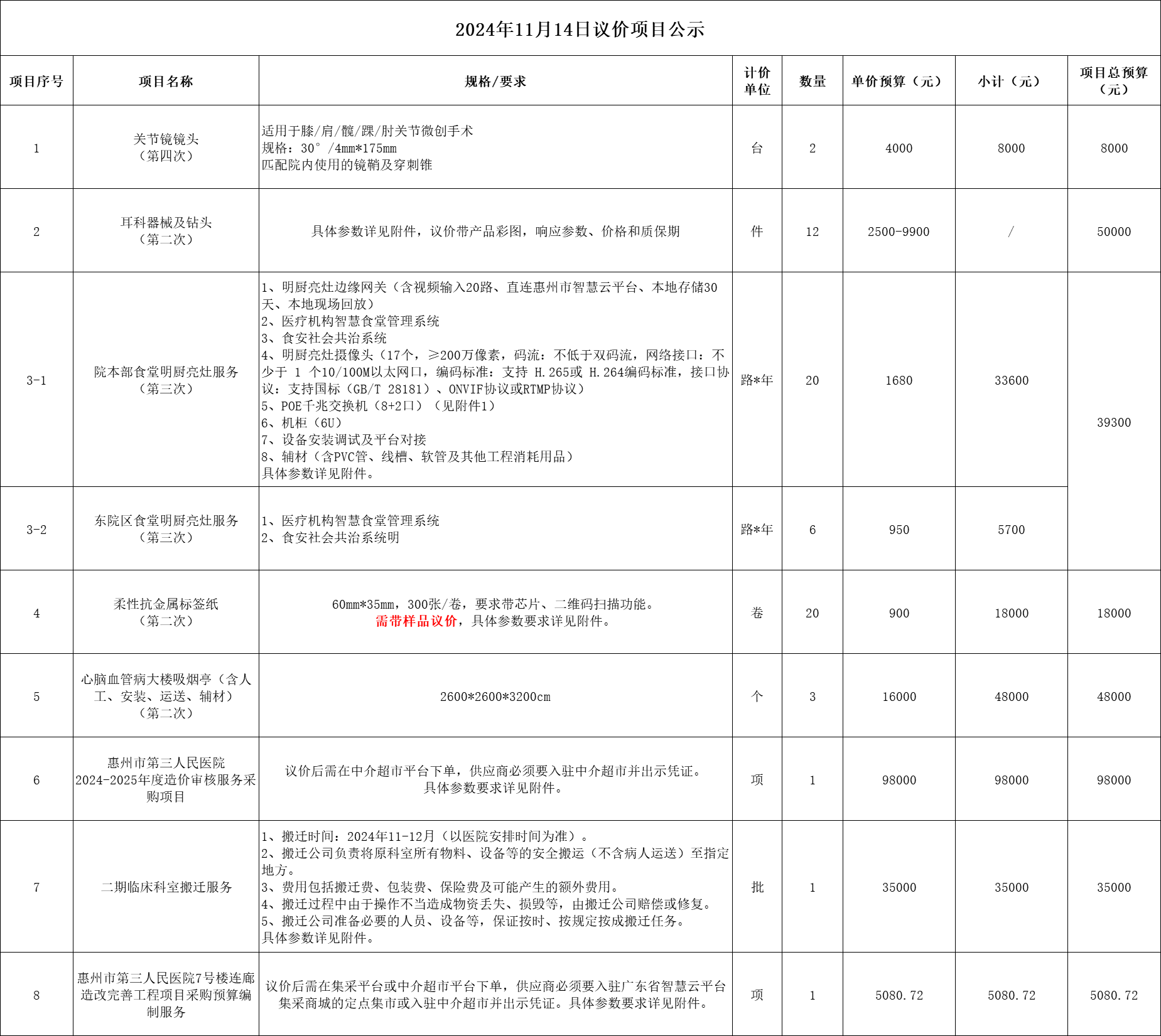 惠州市第三人民醫(yī)院擬定一批采購項目進行議價采購,歡迎符合資格條件的投標人投標。