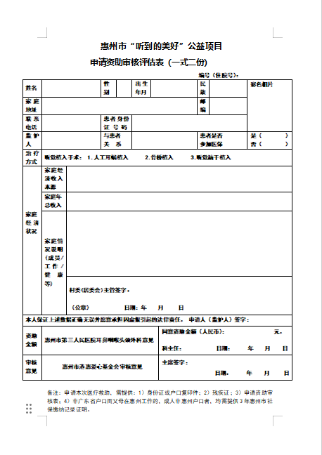 “聽到的美好”公益項(xiàng)目申請(qǐng)資助審核評(píng)估表