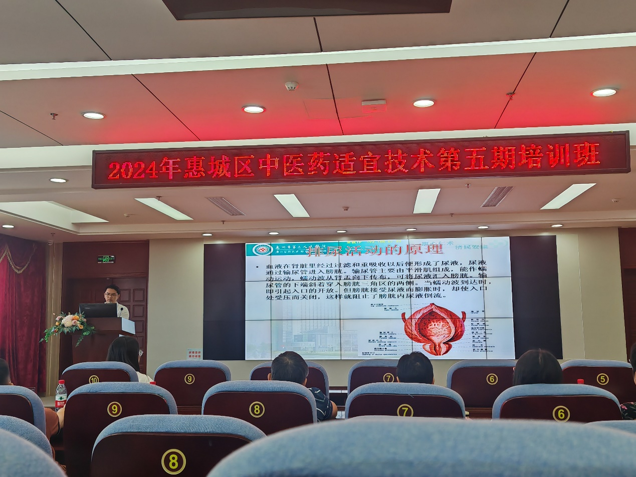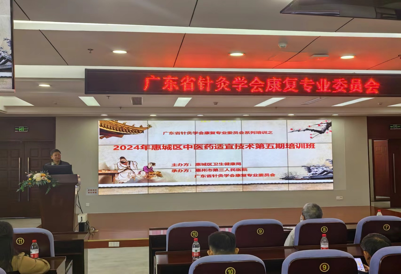 為進(jìn)一步推進(jìn)全國基層中醫(yī)藥示范區(qū)創(chuàng)建,推廣陳小凱省名中醫(yī)工作室傳承經(jīng)驗(yàn),提升惠城區(qū)中醫(yī)藥服務(wù)能力,根據(jù)惠城區(qū)衛(wèi)健局部署,2024年10月12日上午,2024年度惠城區(qū)中醫(yī)藥適宜技術(shù)第五期培訓(xùn)班在惠州市第三人民醫(yī)院東院區(qū)五樓學(xué)術(shù)報(bào)告廳順利進(jìn)行。本次培訓(xùn)班惠城區(qū)衛(wèi)健局二級(jí)調(diào)研員張永華,惠州市第三人民醫(yī)院黨委委員陳小凱等出席。來自全區(qū)各醫(yī)療衛(wèi)生單位的150余名學(xué)員、惠州三院康復(fù)醫(yī)學(xué)科、中醫(yī)科等科室50余名員工共約200余人踴躍參與,會(huì)議由惠州三院康復(fù)醫(yī)學(xué)科病房負(fù)責(zé)人李俊滔副主任醫(yī)師主持。惠州三院康復(fù)醫(yī)學(xué)科陳小凱主任醫(yī)師、李旅萍副主任醫(yī)師、李翊主治醫(yī)師、肖培根醫(yī)師、許磊醫(yī)師進(jìn)行授課。