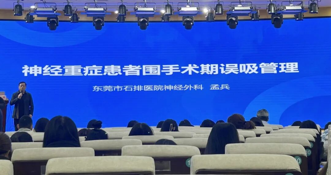 東莞市石排醫(yī)院孟兵教授分享了“神經(jīng)重癥患者圍手術(shù)期誤吸管理”專題,從圍手術(shù)期患者在呼吸、吞咽方面的管理,誤吸的防治,重癥全方位治療和護(hù)理方面做了深入講解,強(qiáng)調(diào)誤吸重在治療的理念。