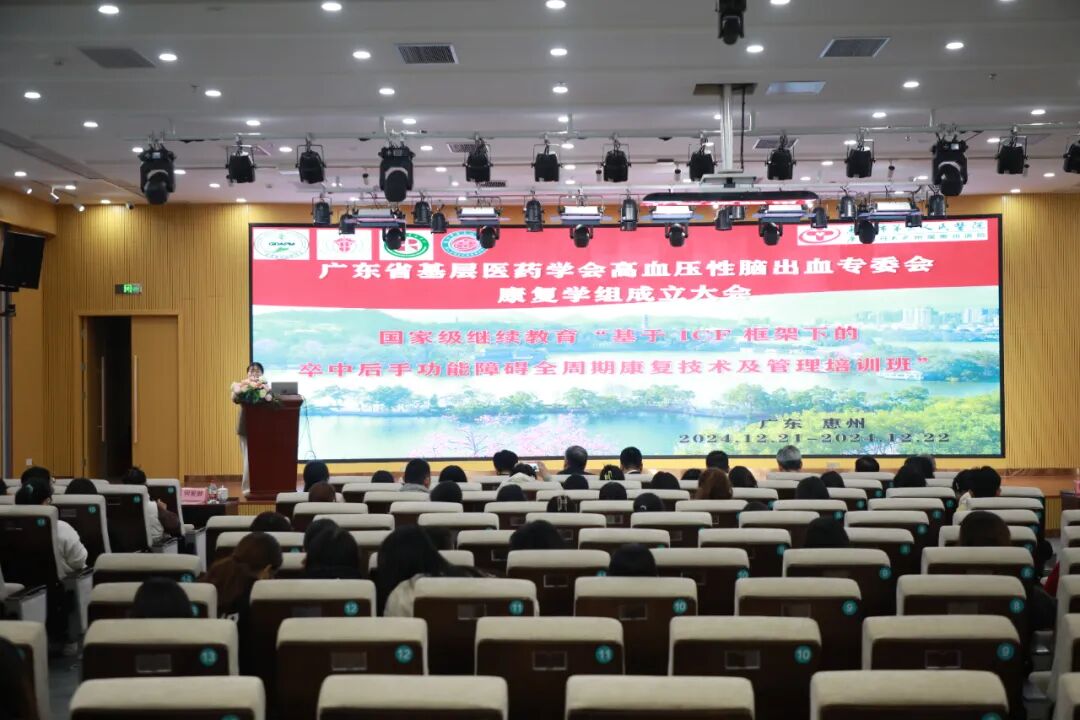 2024 年12月21日,由廣東省基層醫(yī)藥學(xué)會(huì)高血壓性腦出血專委會(huì)主辦,惠州市第三人民醫(yī)院承辦的廣東省基層醫(yī)藥學(xué)會(huì)高血壓性腦出血專委會(huì)康復(fù)學(xué)組成立大會(huì)暨基于ICF框架下的卒中后手功能障礙全周期康復(fù)技術(shù)及管理培訓(xùn)班在惠州順利舉辦。