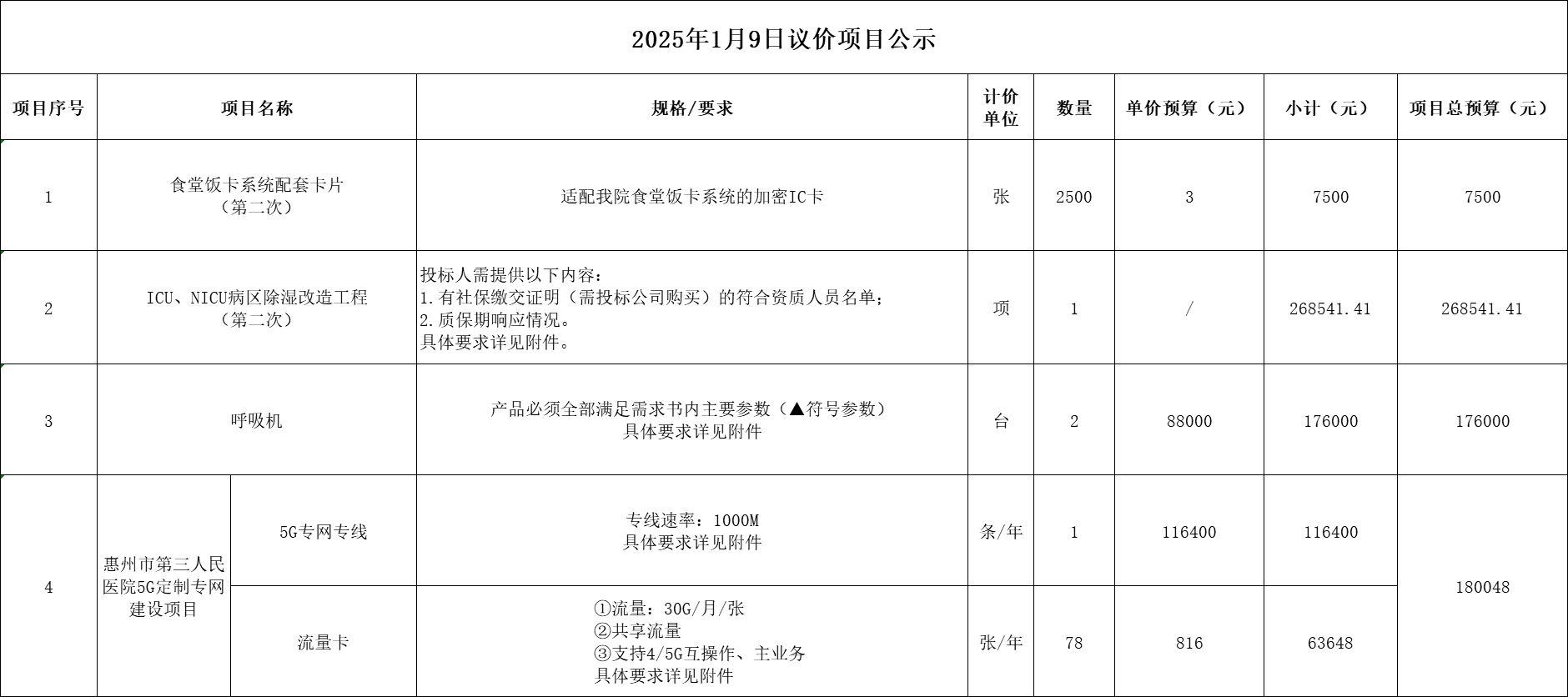 一、項目名稱:20250109議價項目