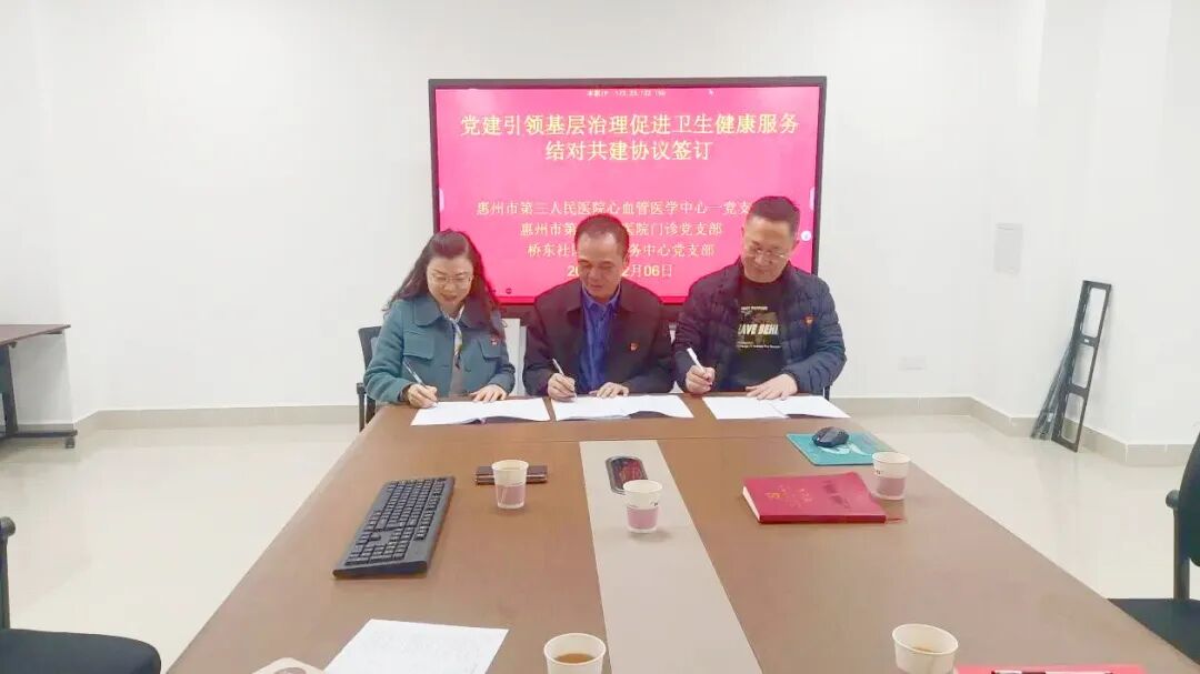 2025 年 2 月 6 日上午,新春伊始,惠州市第三人民醫(yī)院門(mén)診黨支部、心血管醫(yī)學(xué)中心一支部與橋東街道社區(qū)衛(wèi)生服務(wù)中心黨支部的支部委員們齊聚一堂,就黨建引領(lǐng)基層治理促進(jìn)衛(wèi)生健康服務(wù)事項(xiàng)展開(kāi)深入研討,旨在進(jìn)一步推動(dòng)黨建與基層衛(wèi)生健康服務(wù)的深度融合。
