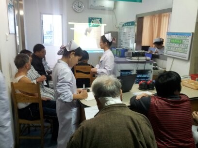 護(hù)士長正在為患者及家屬們宣教“中風(fēng)”相關(guān)知識