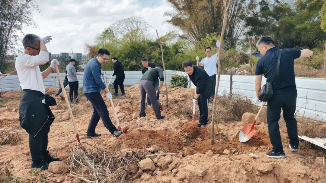 春風(fēng)送暖,綠意萌新。2025年3月12日下午,在第47個中國植樹節(jié)之際,為深入貫徹落實(shí)習(xí)近平生態(tài)文明思想,緊扣省委“綠美廣東”生態(tài)建設(shè)部署及“百千萬工程”號召,積極響應(yīng)“綠美惠州”生態(tài)建設(shè),惠州市第三人民醫(yī)院工會、醫(yī)院辦公室、總務(wù)科、團(tuán)委等多部門共同組織開展了“同植幸福樹,共建綠美家”主題義務(wù)植樹活動。惠城區(qū)人大常委會副主任、惠州市第三人民醫(yī)院院長李雪松,惠州市第三人民醫(yī)院黨委書記肖純等醫(yī)院黨政領(lǐng)導(dǎo)班子成員帶領(lǐng)第一、二屆醫(yī)學(xué)博士班及護(hù)理碩士班成員,黨員干部職工等100余人前往革命先烈鄧演達(dá)同志的故鄉(xiāng)——惠州市惠城區(qū)三棟鎮(zhèn)鹿頸村參加活動。此次活動以紅色文化潤心、以綠色行動賦能,將生態(tài)文明建設(shè)與賡續(xù)革命精神深度融合,為鄉(xiāng)村振興厚植生態(tài)底蘊(yùn),為高質(zhì)量發(fā)展注入精神動力。紅色沃土育新綠,醫(yī)者匠心護(hù)青山