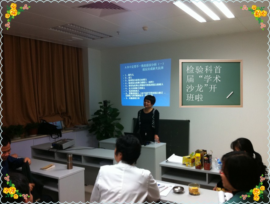 1113下午下班后,檢驗科同事師生們齊聚示教室,舉行了一場別開生面、精彩活潑的輸血相關知識交流會——暨檢驗科首屆“學術沙龍”活動。