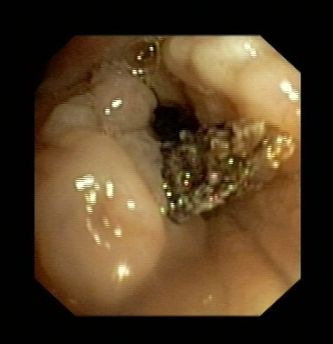 近日,呂先生有門診收入我呼吸科住院治療,全體醫(yī)護(hù)人員高度重視,認(rèn)真討論病情。我科吳主任仔細(xì)看過呂先生的CT片后,觀察到右下肺氣管內(nèi)異物,于是決定行支氣管鏡檢查。在氣管鏡室,吳主任給他做了支氣管鏡檢查,發(fā)現(xiàn)呂先生右下肺支氣管內(nèi)卡著一個黑黑的異物,由于時間太久,異物周圍已充血水腫,表面有膿苔及壞死物覆蓋,清除膿苔及壞死物后,可見異物被肉芽組織緊緊包埋。吳主任成功取出了呂先生氣管內(nèi)異物,并吸出了氣管內(nèi)膿性分泌物。呂先生咳嗽癥狀立刻改善,行氣管鏡檢查后第二天患者無咳嗽癥狀,順利出院。