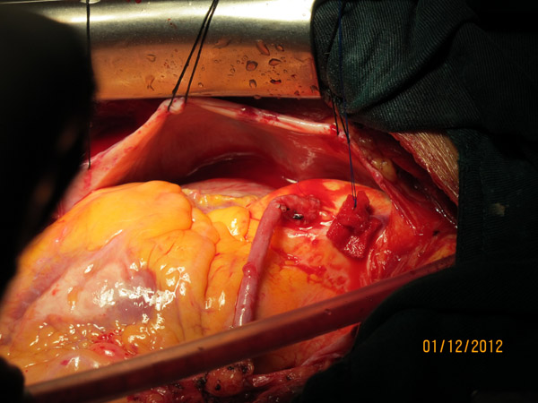 心臟固定器下對取下的靜脈行搭橋縫合