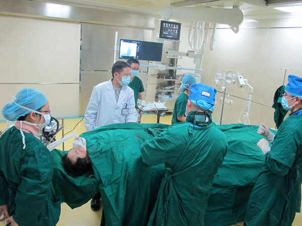 據(jù)心血管醫(yī)學(xué)中心主任肖純博士介紹,他已經(jīng)記不清這是他第幾次經(jīng)歷這種生死攸關(guān)、驚心動魄的時刻了!自惠州市第三人民醫(yī)院心血管內(nèi)科開展急性心肌梗塞綠色通道以來,已經(jīng)挽救了上百位患者生命!急診支架置入手術(shù)風(fēng)險很高,但患者的獲益也很大。“時間就是生命”,急性心肌梗塞如果就診及時,在患者的心肌還沒有完全壞死之前開通血管,就能挽救瀕臨壞死的心肌,從而避免或減輕心臟功能的損傷!該例患者病情重,病變復(fù)雜,手術(shù)難度非常大。這樣一例高危急性心肌死患者的搶救成功,再次證明了市第三人民醫(yī)院心血管醫(yī)學(xué)中心的強大實力和該院各專科之間的團(tuán)結(jié)協(xié)作精神。“我們不僅設(shè)備精良,更擁有一支團(tuán)結(jié)協(xié)作、能戰(zhàn)斗的優(yōu)秀團(tuán)隊。這次手術(shù),從急診科、重癥醫(yī)學(xué)科、醫(yī)學(xué)影像中心到心血管醫(yī)學(xué)中心,從醫(yī)生、護(hù)士到技師,無不體現(xiàn)了團(tuán)隊作戰(zhàn)的精神,是因為有我們?nèi)缃z如扣地緊密配合和快速聯(lián)動,才創(chuàng)造了生命奇跡。”肖純動情地說道。
