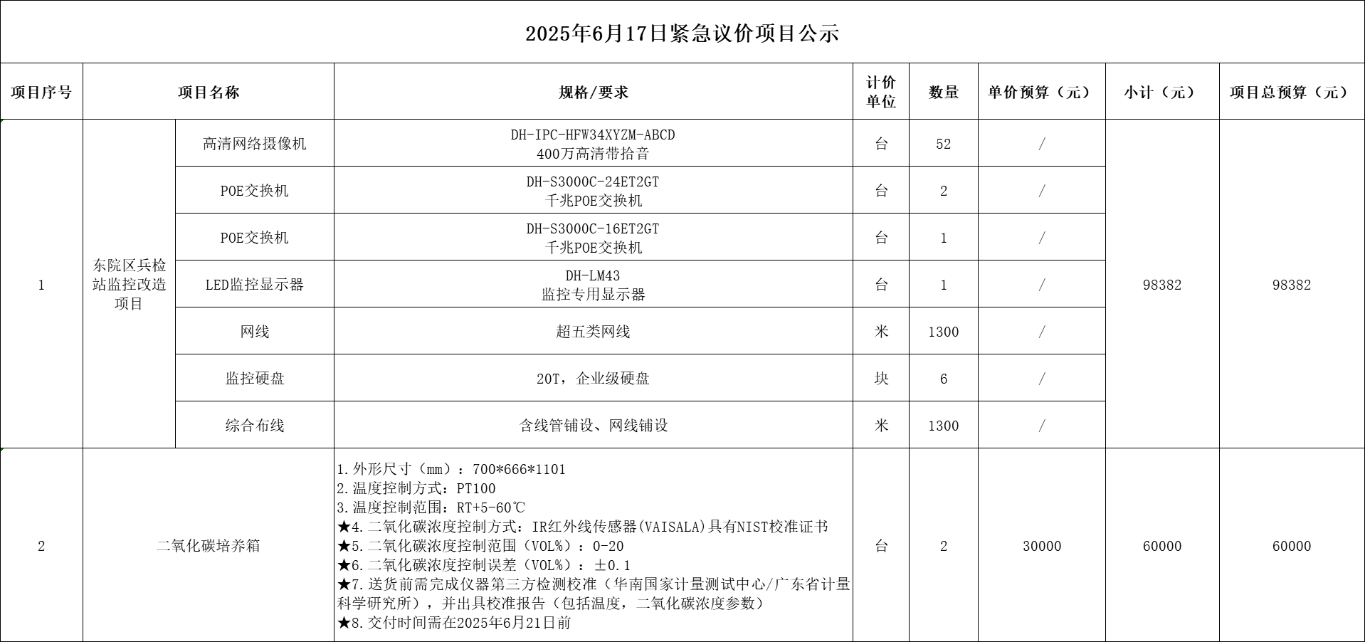 一、項目名稱:20250617緊急議價項目
