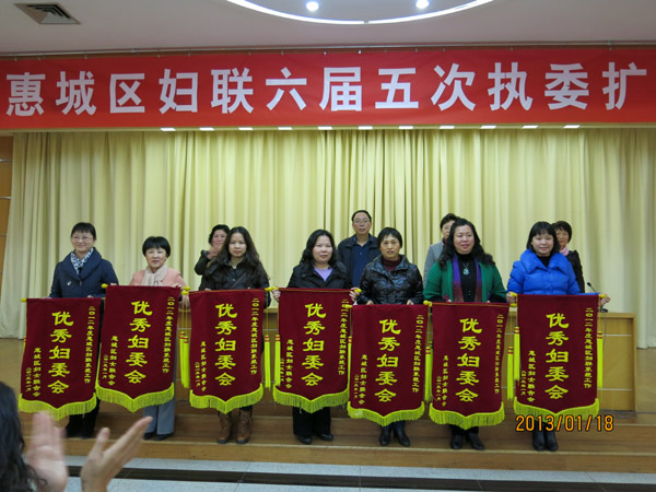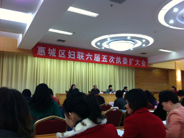 2012年1月18日,惠城區(qū)婦聯(lián)系統(tǒng)召開六屆五次支委(擴(kuò)大)會(huì)議,出席會(huì)議的領(lǐng)導(dǎo)有區(qū)委常委凌戰(zhàn),各鎮(zhèn)、街道區(qū)直單位婦聯(lián)主席、婦女主任及婦干100多人參加了會(huì)議。