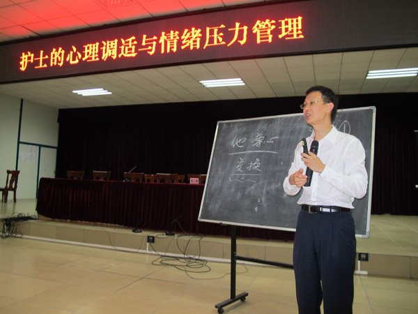 本次講座邀請到南方醫(yī)科大學(xué)公共衛(wèi)生學(xué)院心理學(xué)系副主任,副教授,碩士生導(dǎo)師馮現(xiàn)剛教授。馮教授的語言不但幽默風(fēng)趣,而且意味深長,馮教授主要為我們從如何認識自我、心理調(diào)適以及情緒壓力管理等方面,結(jié)合多年工作的經(jīng)驗,給我們提供了各種心理建議和指導(dǎo)。授課現(xiàn)場馮教授與護理人員互動良好,不時傳來陣陣掌聲和笑聲。
