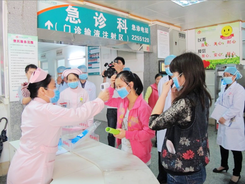 2)導(dǎo)診護(hù)士引導(dǎo)至一門診預(yù)檢分診處進(jìn)行測(cè)量體溫;