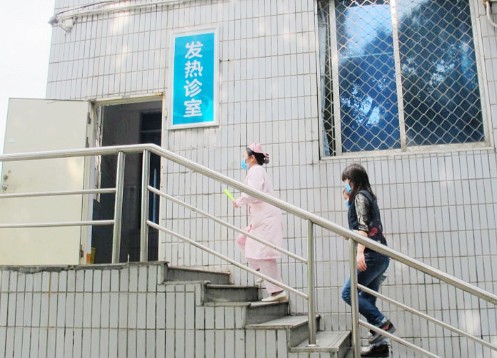 3)對(duì)患者測(cè)量體溫,測(cè)量到體溫39.1℃,患者并有咳嗽等癥狀,囑患者及陪人戴上口罩;