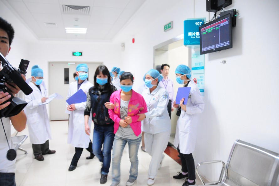 10)急診科醫(yī)生及護(hù)士護(hù)送患者至感染科。