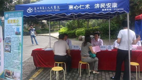 活動分別于4月20日和5月11日分兩個場次舉行,主要由醫(yī)療義診、兒童漂書、美容美發(fā)美體美甲和義賣等活動構(gòu)成,充分兼顧到男女老少不同人群的需要,活動現(xiàn)場熱鬧紅火,大家在參與的過程中也收獲了一份好心情。我院依舊是參與醫(yī)療義診環(huán)節(jié),耳鼻咽喉-頭頸外科、神經(jīng)內(nèi)科和腎內(nèi)科積極參加了活動,為有需要的居民提供免費檢查、健康咨詢。對于耳鼻咽喉和神經(jīng)內(nèi)科主任親自出診,街坊們都表示很感謝,因為“平時去到醫(yī)院就診都要麻煩一些,今天能在家門口就咨詢到主任專家,三院確實越來越為老百姓著想了?!?/span>
