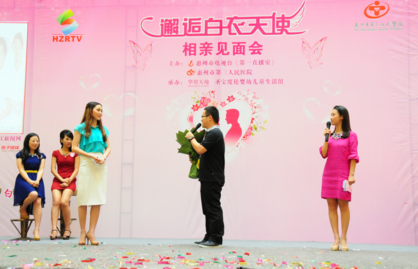 “邂逅白衣天使”活動(dòng)是惠州電視臺(tái)《第一直播室》欄目與惠州市第三人民醫(yī)院為慶祝第101個(gè)“5·12國(guó)際護(hù)士節(jié)”、幫助三院護(hù)士尋找人生伴侶而聯(lián)合舉辦的一次相親活動(dòng)。