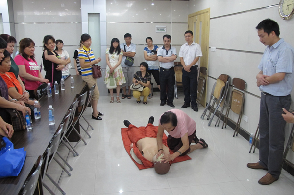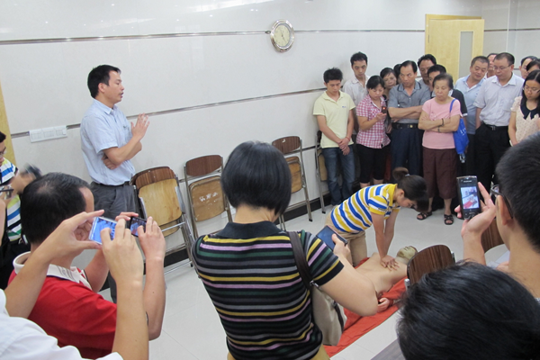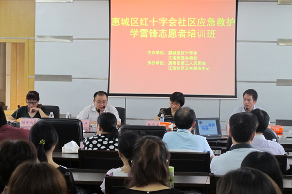 2013年7月9日下午3:30,由區(qū)紅十字會(huì)、江南街道辦事處主辦,惠州市第三人民醫(yī)院、江南社區(qū)衛(wèi)生服務(wù)中心協(xié)辦的“社區(qū)應(yīng)急救護(hù)學(xué)雷鋒志愿者培訓(xùn)班”正式開講。本次培訓(xùn)班由區(qū)衛(wèi)生局林彩英工會(huì)主席組織召開,旨在增強(qiáng)社區(qū)醫(yī)生、志愿者的應(yīng)急救護(hù)能力,在黃金4分鐘搶救時(shí)間內(nèi)為救護(hù)車到來(lái)做好前期搶救工作,保障社區(qū)居民生命安全。