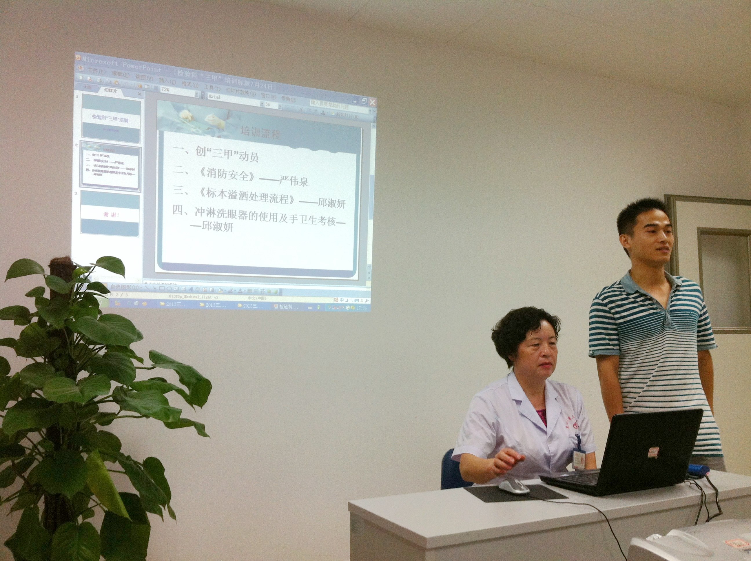 7月24日下午,醫(yī)學檢驗科全體同仁在示教室舉行了創(chuàng)“三甲”培訓課,培訓內(nèi)容為創(chuàng)“三甲”動員大會、手衛(wèi)生及消防安全。