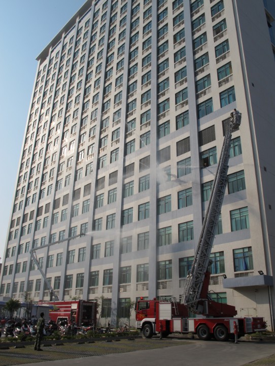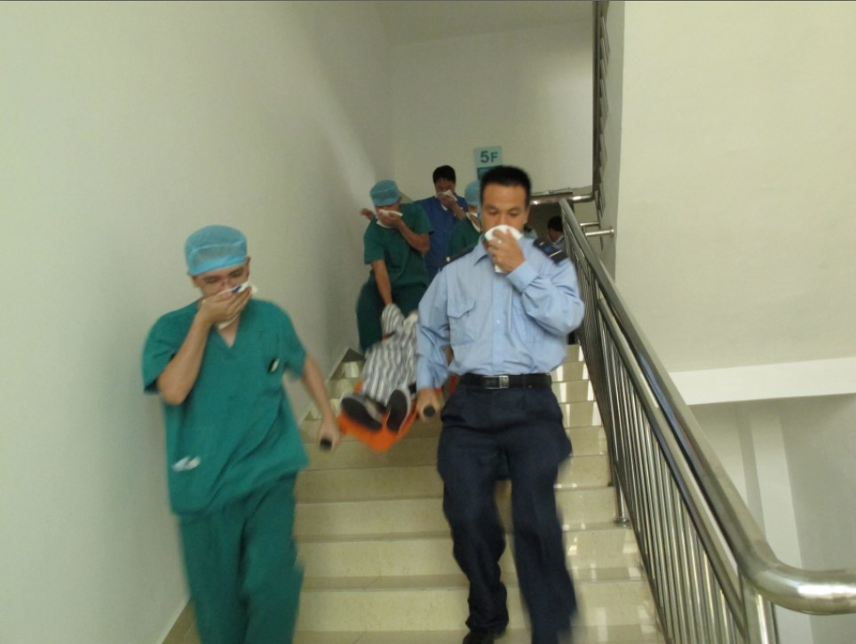 頓時麻醉科、手術(shù)室、乳腺科、ICU、婦科、新生兒科、心胸外科等各科的醫(yī)護人員在科主任、護士長的帶領(lǐng)下,緊張有序從安全通道向外撤離和轉(zhuǎn)移病人。醫(yī)護人員與保安及護工人員齊心協(xié)力,或用擔(dān)架,或扶或攙,沿著樓梯步道,按照平時掌握的火災(zāi)逃生技能和消防急救知識,全部在最短時間內(nèi)將住院病房的患者。隨后各科醫(yī)護人員輪流演練了用滅火器撲滅火源。就在火災(zāi)發(fā)生后,消防官兵也迅速趕到現(xiàn)場,及時用消防水車滅火,用云梯轉(zhuǎn)移高樓層的陷入困境的人員,與三院醫(yī)護人員一道圓滿完成了本次消防演練。