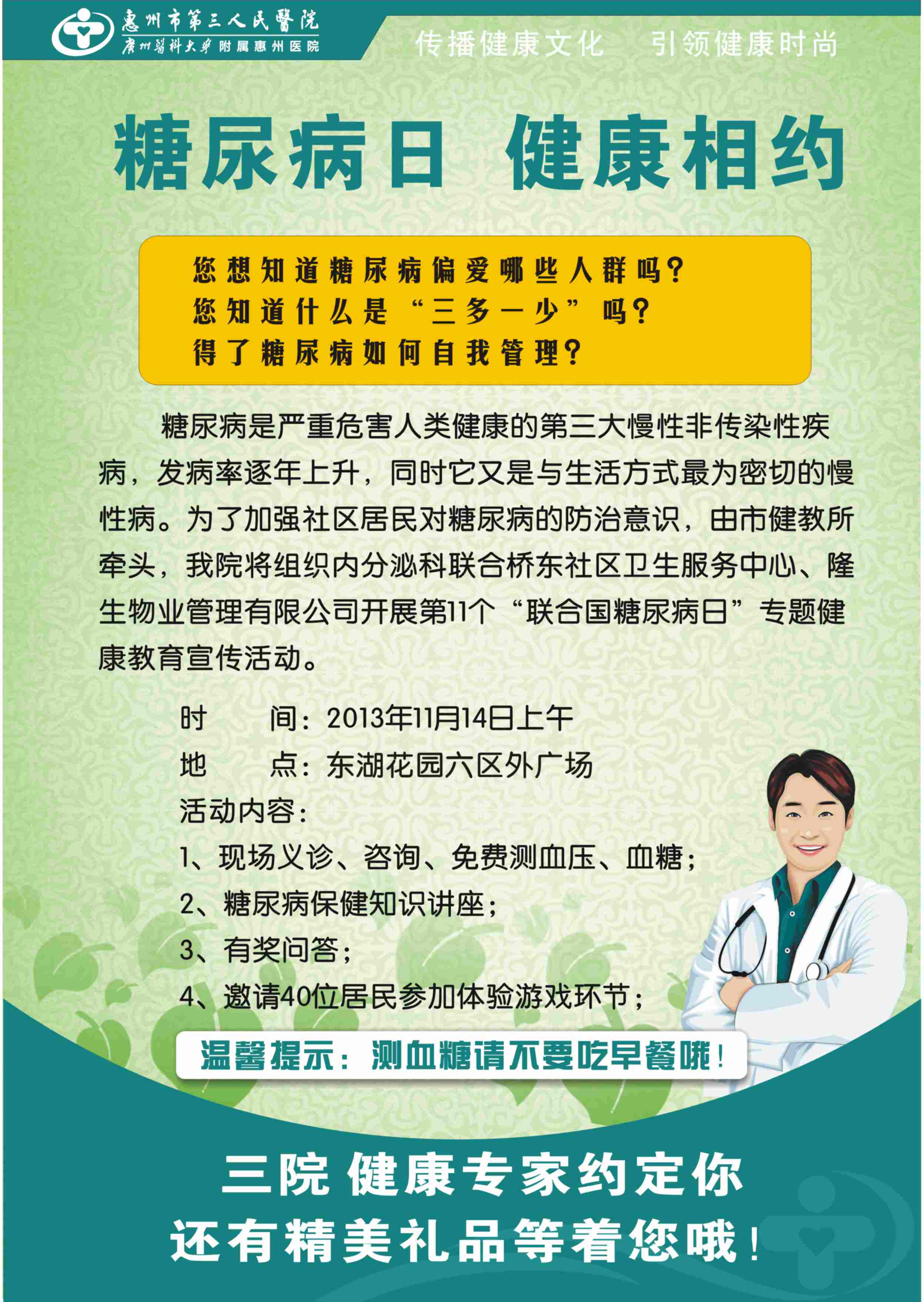 ·上一篇:“服務(wù)百姓 健康行動”——健康衛(wèi).. ·下一篇:2013年“聯(lián)合國糖尿病日”大型義..