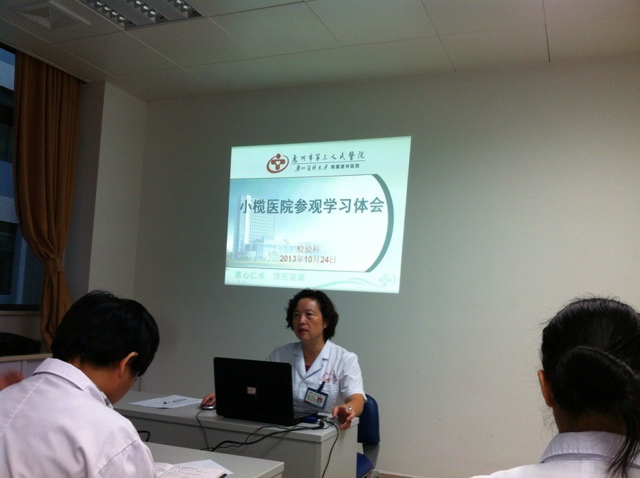為了吸取借鑒經(jīng)驗(yàn),提升自己,為通過(guò)“三甲”標(biāo)準(zhǔn)評(píng)審,近期,由我院檢驗(yàn)科唐躍華主任帶領(lǐng)全體檢驗(yàn)科員工及部分相關(guān)職能科室同事赴中山小欖人民醫(yī)院檢驗(yàn)科參觀學(xué)習(xí)。該科莫主任對(duì)三院檢驗(yàn)科一行給予了熱情的接待。