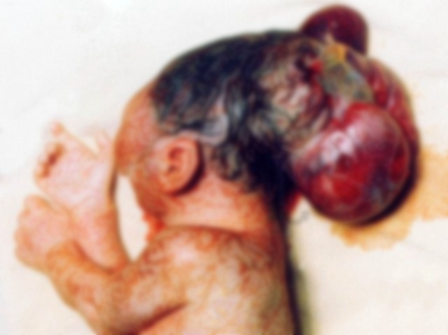 腦膨出是由于顱骨先天性缺損,腦脊膜腔內(nèi)壓力較高,顱內(nèi)結(jié)構(gòu)通過缺損處疝出顱外。腦膜自缺損處向外膨出形成腦膜膨出,腦實(shí)質(zhì)一部分或大部分與硬腦膜一起膨出顱外,形成腦膜腦膨出。胎兒腦膜腦膨出發(fā)生率較低,約1/10000。