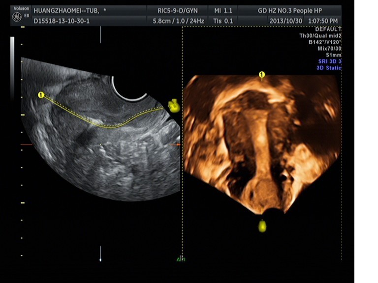 隨著四維超聲技術(shù)的成熟,隨著SonoVue 造影劑的誕生,經(jīng)陰道四維超聲聯(lián)合應(yīng)用SonoVue 超聲造影檢查子宮、輸卵管的技術(shù)也應(yīng)運而生。子宮輸卵管超聲造影術(shù)具有無放射性、不需特殊環(huán)境、無過敏反應(yīng)、可重復(fù)檢查、無損傷性、安全、價廉等優(yōu)點,容易顯示輸卵管全程、對輸卵管盤曲或成角的判斷更精確,降低操作依賴性,操作簡便,圖像直觀,便于臨床醫(yī)師觀察。這既彌補了以往輸卵管通液術(shù)的主觀性較大、準(zhǔn)確性較差等不足,更避免了X 線子宮輸卵管碘油造影(HSG)的射線輻射、碘油過敏以及腹(宮)腔鏡檢查有創(chuàng)傷高風(fēng)險等缺點。