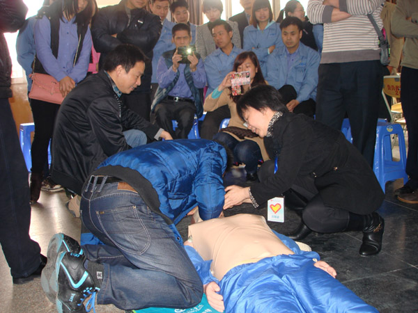 為普及急救知識,2014年3月12日上午,惠州市第三人醫(yī)院在惠州市公共汽車總公司舉行了急救知識培訓(xùn)講座活動。由急診科林月雄醫(yī)生主講,并現(xiàn)場指導(dǎo)職工如何操作心肺復(fù)蘇。我院志愿者服務(wù)隊組織數(shù)名志愿者到場協(xié)助。