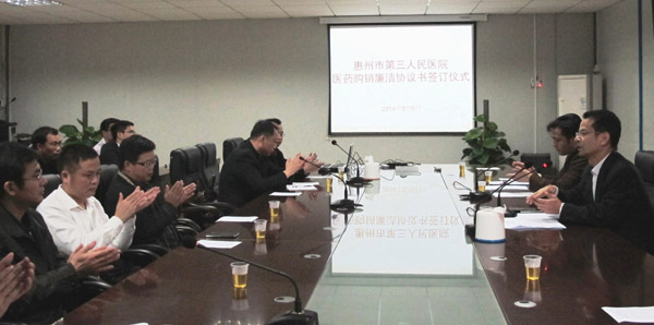 會(huì)后,鄧書(shū)記與藥品、醫(yī)療器械供應(yīng)商代表分別簽訂《藥品購(gòu)銷廉潔協(xié)議書(shū)》和《醫(yī)療器械購(gòu)銷廉潔協(xié)議書(shū)》。(黨辦 楊德雄)