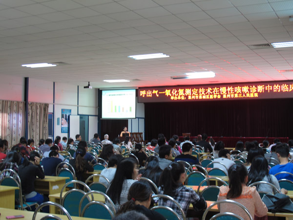 327下午,廣州呼吸疾病研究所賴克方教授應(yīng)邀來我院進(jìn)行學(xué)術(shù)講座。本次活動(dòng)由惠州市惠城區(qū)醫(yī)學(xué)會(huì)、惠州市第三人民醫(yī)院共同舉辦,講座題目為《呼出氣一氧化氮測定技術(shù)在慢性咳嗽診斷中的臨床應(yīng)用》,我院及其它兄弟單位醫(yī)務(wù)人員共計(jì)200余人參加了學(xué)術(shù)活動(dòng)。