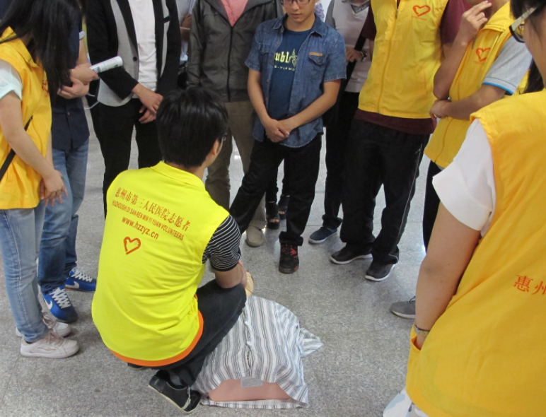 校園安全重于泰山,校園安全問題與每個(gè)師生、家長和社會(huì)有著切身的關(guān)系。為加強(qiáng)大學(xué)生個(gè)人安全意識(shí)、安全防范意識(shí),減少意外事件的發(fā)生率,323下午,東江義工隊(duì)、東江時(shí)報(bào)幫辦義工聯(lián)盟隊(duì)、惠州市第三人民醫(yī)院攜手走進(jìn)了位于馬安鎮(zhèn)的惠州市經(jīng)濟(jì)職業(yè)技術(shù)學(xué)院,為在校150名計(jì)算機(jī)系的師生普及防盜、防搶、防詐騙知識(shí),傳授防溺水及自救他救方法以及心肺復(fù)蘇操作技能,從多個(gè)角度為在場師生講解傳播安全知識(shí)。此次講座,為了讓學(xué)生們能親身體驗(yàn)下心肺復(fù)蘇操作,我院派出三名志愿者、帶去了個(gè)心肺復(fù)蘇模型。