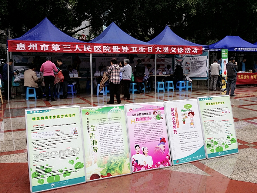4月7日為“世界衛(wèi)生日”,市衛(wèi)生局定于4月3日組織市直及惠城區(qū)主要醫(yī)療衛(wèi)生單位,在濱江公園廣場(chǎng)開展主題為“病媒傳播的疾病”的大型健康知識(shí)宣傳暨志愿者醫(yī)療衛(wèi)生服務(wù)活動(dòng)。第三人民醫(yī)院由社醫(yī)部牽頭組織院內(nèi)專家及志愿者到場(chǎng)開展義診活動(dòng)。